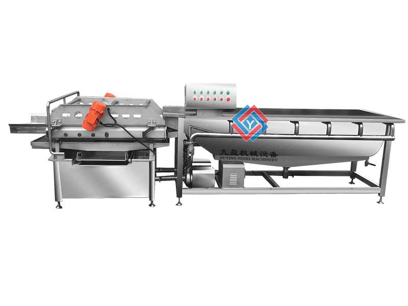 涡流洗菜机采用的是旋流式和气泡同时清洗的模式,缸底部布置了高压注气管,高压气泡可以分离开抱成团的果蔬,可以解决传统纯漩流洗菜机的弊端,并且清洁的效果好,洗菜机不会损伤果蔬,结构更加简单,比传统的输送带可以减少大量的清洗时间,使用起来更加方便,和物料接触的输送面采用了冲压孔的设计,可以分离物料里的碎料,同时洗菜机配备了进口的震动臂,震动的频率高还比较平稳,双排喷淋系统可以形成高密度喷淋,保证在清洗过程中果蔬更加干净。