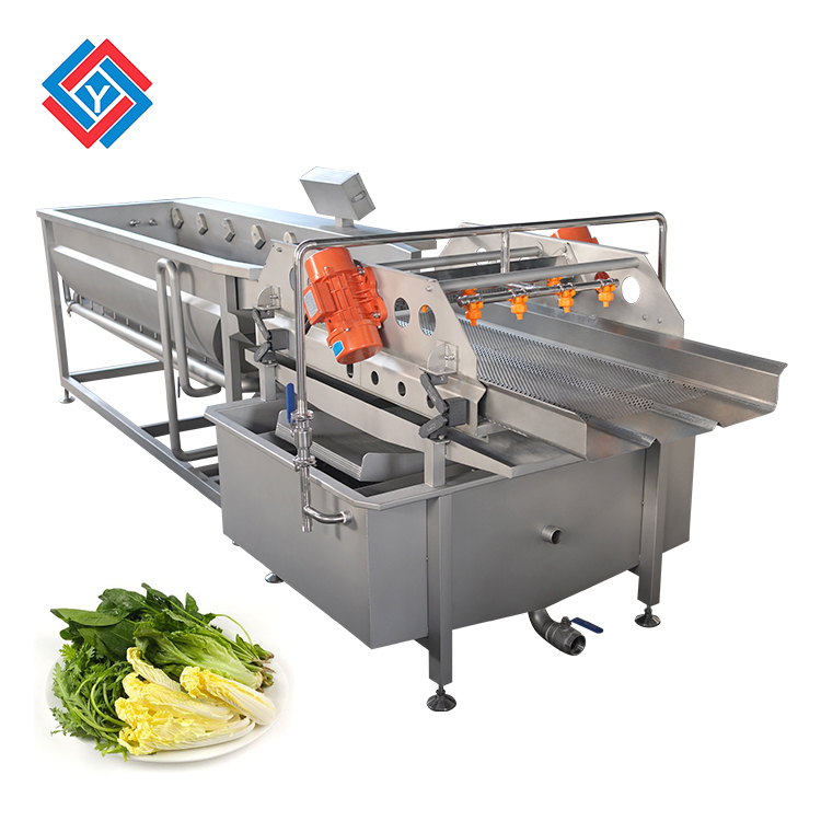 蔬菜清洗机采用的是水浴式的气泡清洗,物料可以在清洗剂内通过气泡释放过程中产生翻腾,让物料在水中翻转清洗来分离清洗表面的附着物,可以模拟人工清洗的操作,由于物料是在汽水混合物中翻腾进行运动,可以的避免清洗时产生的碰撞和损伤。